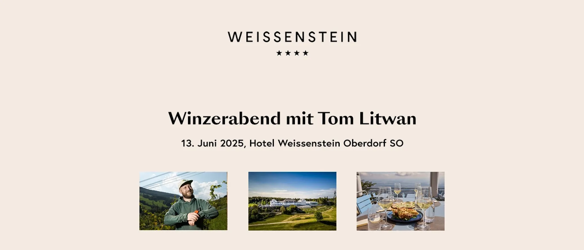 03.04.2025Tauchen Sie in die faszinierende Welt des Weins ein und erleben Sie einen genussvollen Abend in der einzigartigen Atmosphäre des Weissensteins. Tom Litwan, der leidenschaftliche Winzer aus Oberhof AG, gewährt spannende Einblicke in seinen biologischen Weinbau und verrät, was seine Weine so einzigartig macht. Freuen Sie sich auf einen genussvollen Abend voller Aromen und Inspiration!