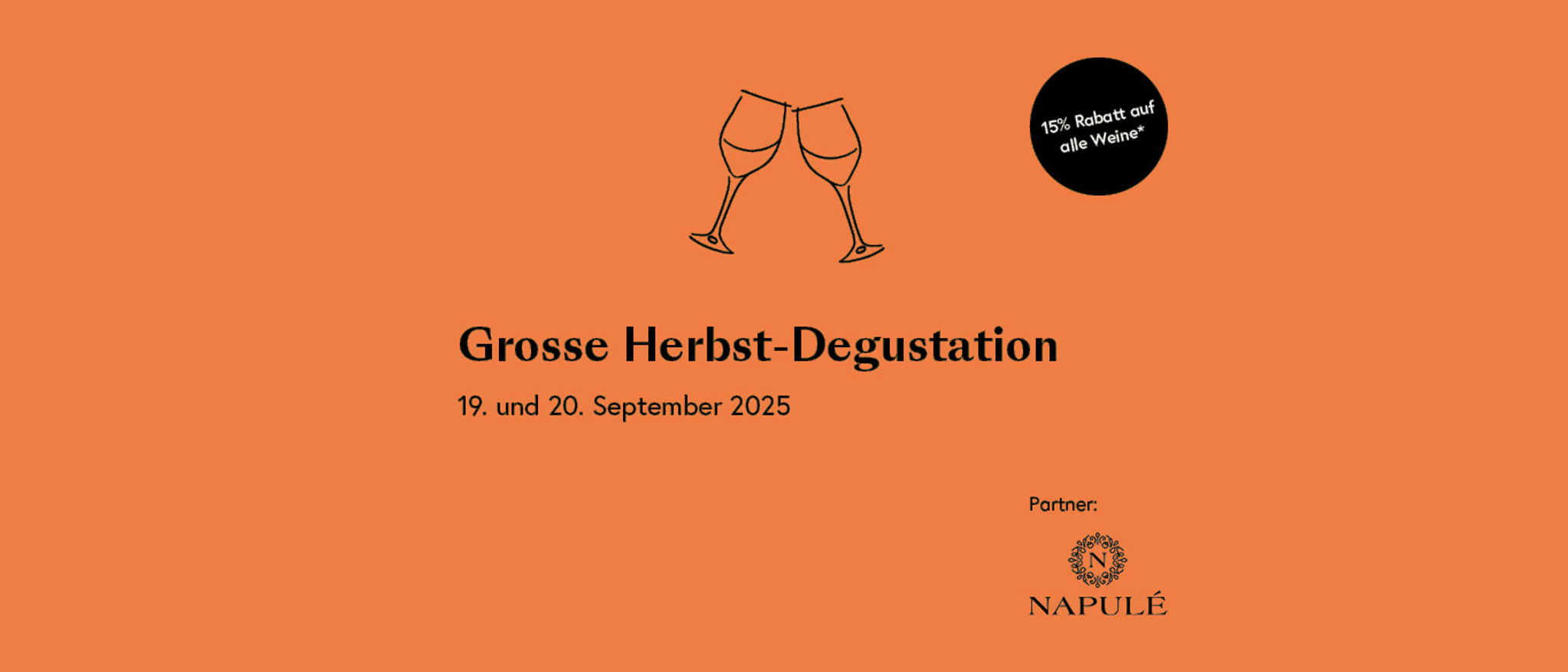 19.08.2025Degustieren Sie mehr als 50 Spitzenweine aus Europas besten Weinregionen. Erstmals an zwei Standorten – in Zürich und neu auch in Luzern. Entdecken Sie unsere Herbst-Selektion und geniessen Sie dazu frische Holzofen-Pizzen von Napulé. Vor Ort profitieren Sie zudem von einem einmaligen 15%-Rabatt auf alle Weine.*